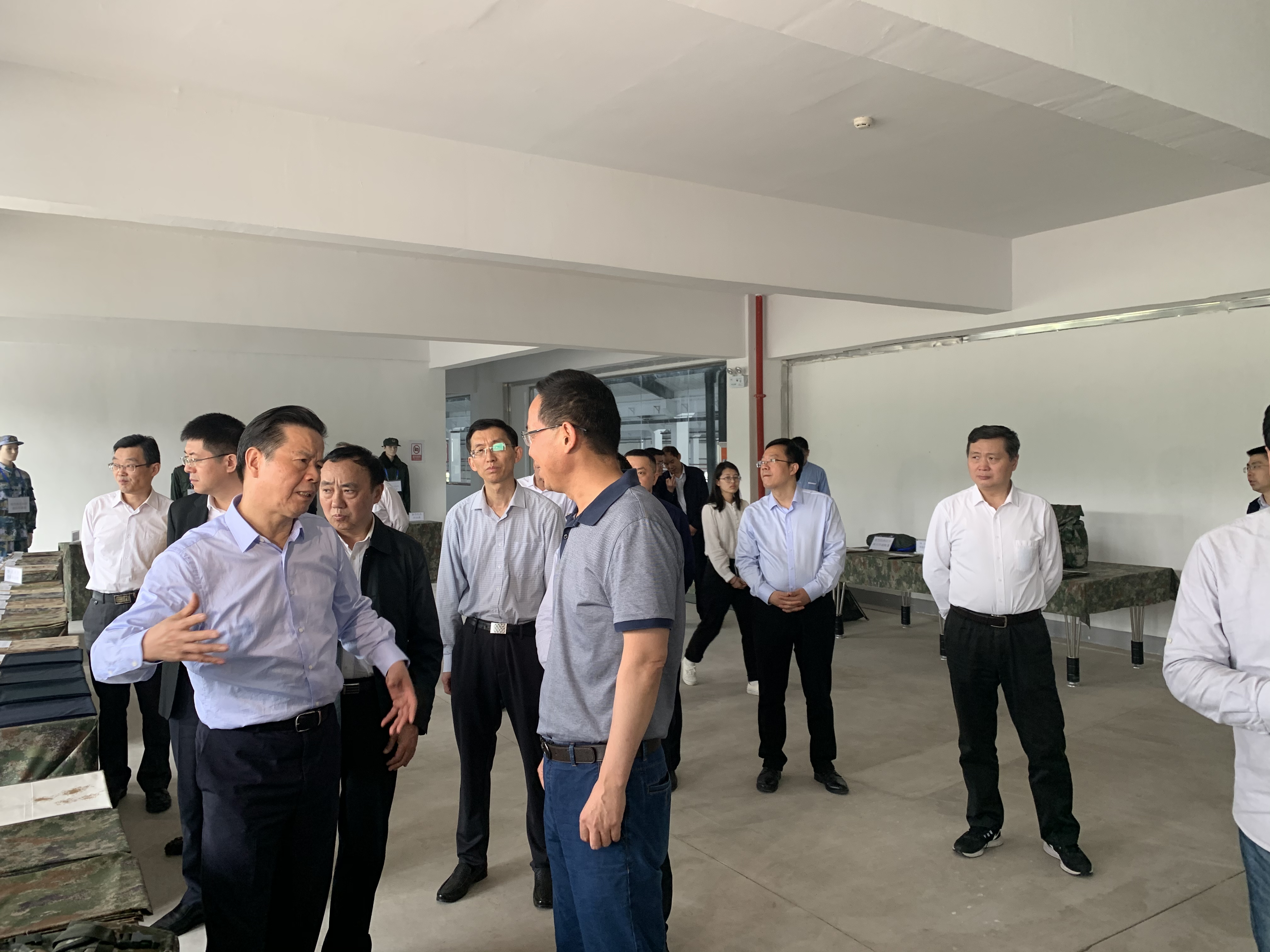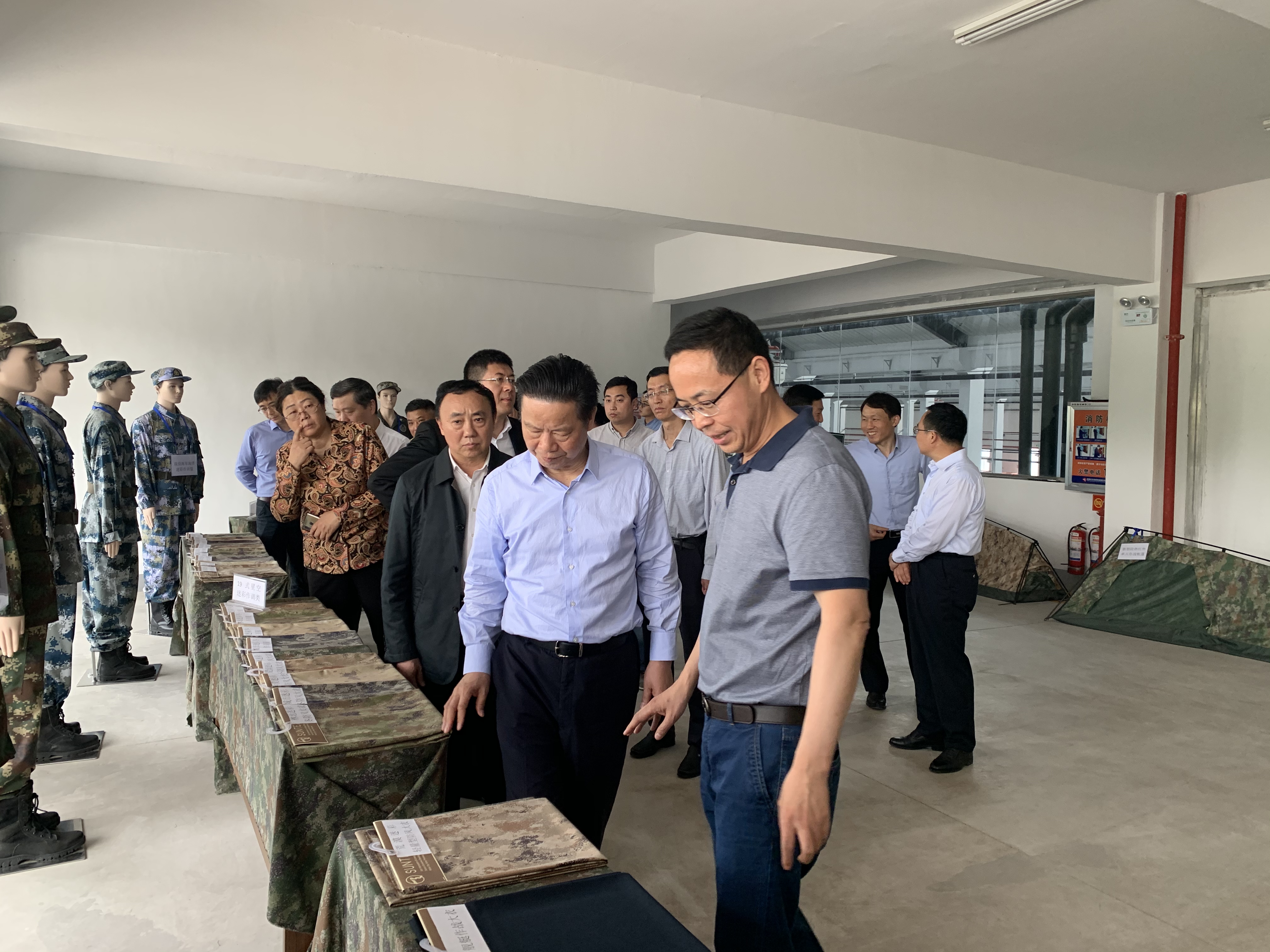 在詳細(xì)考察 “軍用裝具被裝和民用功能服裝材料產(chǎn)業(yè)示范項(xiàng)目”過(guò)程中,領(lǐng)導(dǎo)們對(duì)公司生產(chǎn)并即將在部隊(duì)列裝的“新型迷彩被裝材料”給予了高度的肯定與評(píng)價(jià)。